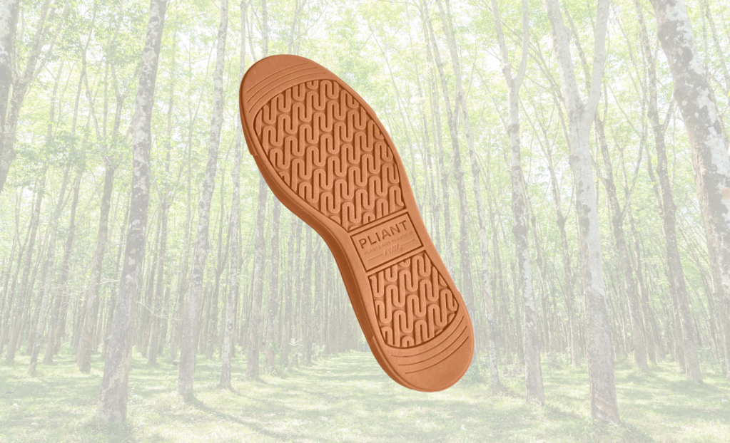 Pliant is made with the same “natural fiber welding” process behind the company’s first creation, Clarus, a natural-fiber alternative to polyester or nylon. The technology fuses natural fibers or polymers — tree rubber, in the case of Pliant — using heat and pressure, without fossil-fuel-based binders or glues.