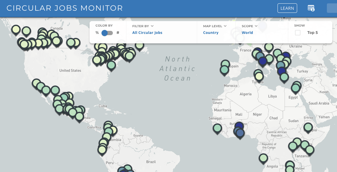 We aim to use data, evidence and digital tools to frame the circular economy around the issues that most concern our stakeholders. By doing this, we hope to create awareness of not only how powerful a tool the circular economy can be for addressing today’s major challenges, but also how people in work now and in the future are for making the big changes that we need in this decade of action. The Circular Jobs Monitor demonstrates how circular activities translate into jobs, to show which sectors have the most ongoing circular activity and potential and support the design of evidence-based interventions.