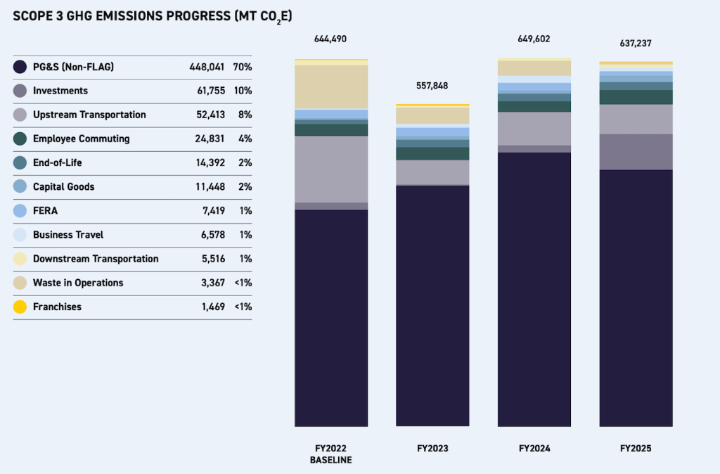 In 2025, the business noted a 14 percent rise in Scope 3 emissions since 2021, which it is seeking to reset to 2022 to account for the impacts of the COVID-19 pandemic. Emissions intensity dropped by 10 percent in the same period.