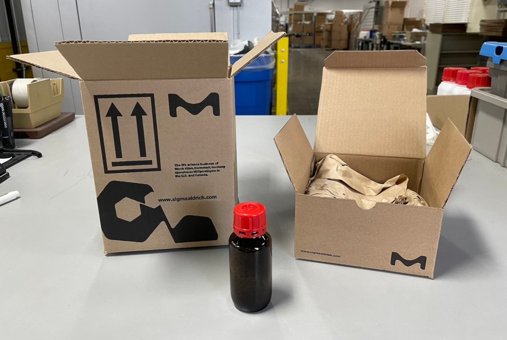 One place where sustainability goals win over MilliporeSigma customers is packaging, which contributes 10 percent of the company’s emissions. Merck KGaA has committed to reducing packaging weight per unit sales by 10 percent by 2030, ensuring that all fiber materials are deforestation-free, and designing packages to be recovered, recycled or reused.